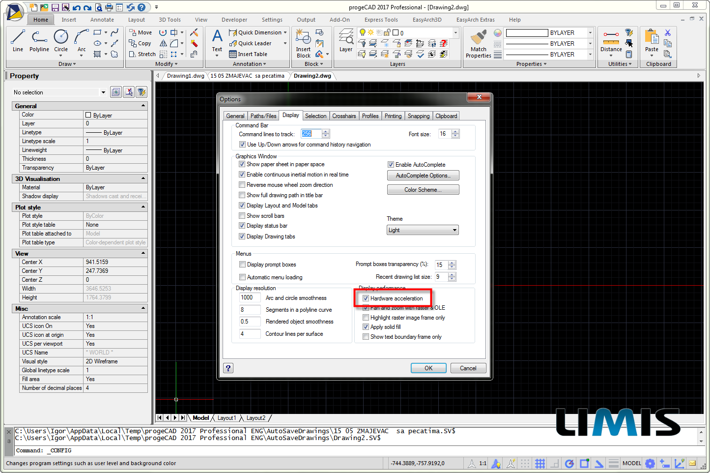 Fixed program slowdown during the osnap operation with "Center Snap" enabled, in drawings with a large number of arcs
